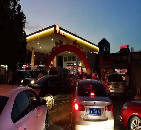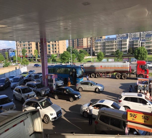 7月18日,藍天如洗,加油站內(nèi)彩旗飄飄,從上午7:00開始,各加油站便進入了忙碌不停的狀態(tài),一整天車輛川流不息,絡(luò)繹不絕。